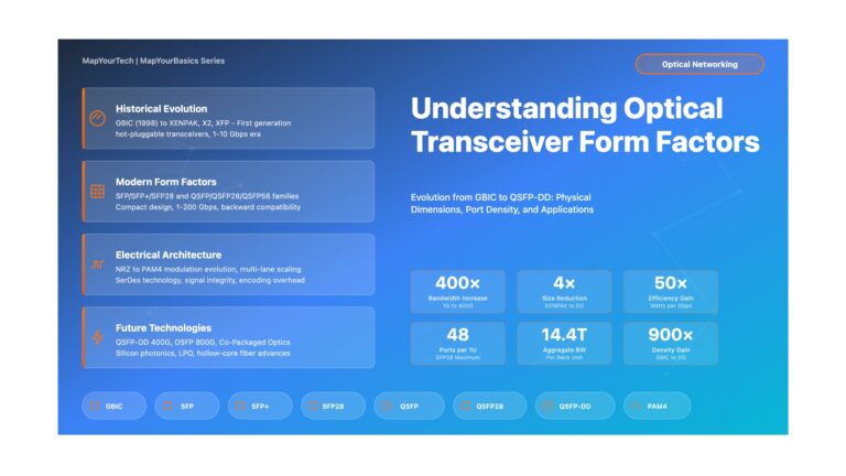 Understanding Optical Transceiver Form Factors: Evolution from GBIC to QSFP-DD Understanding Optical Transceiver Form Factors: Evolution from GBIC to QSFP-DD...