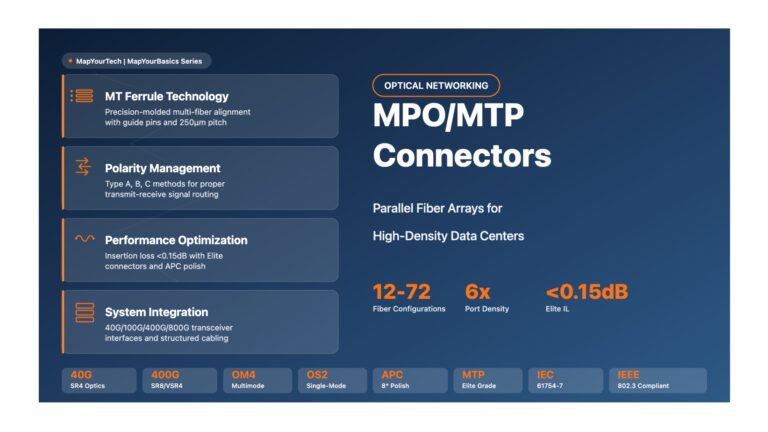 MPO/MTP Connectors: Parallel Fiber Arrays – Complete Guide | MapYourTech MPO/MTP Connectors: Parallel Fiber Arrays Complete Technical Guide to Multi-Fiber...