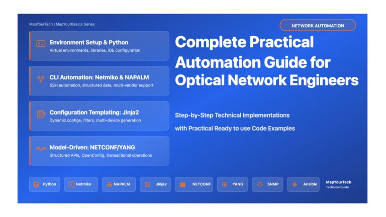 27 min read Complete Technical Guide: Automation for Optical Network Engineers Practical Automation for Optical Network Engineers Step-by-Step Implementation Guide...