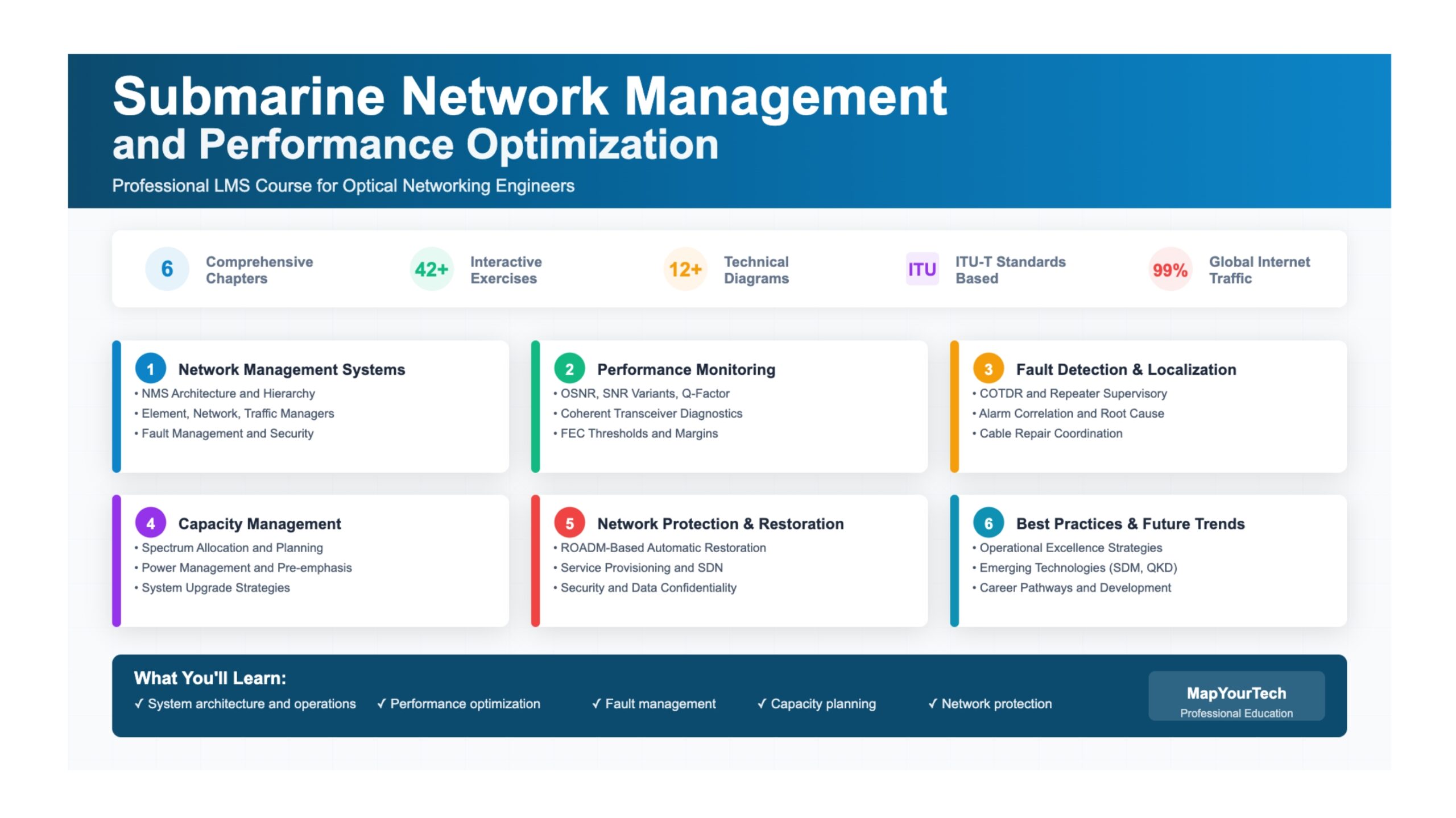What You Will Master in This Course Comprehensive competencies in submarine network management and performance optimization Core Competencies: Network Management Architecture: Master hierarchical NMS systems (EMS, NMS, TMS), OA&M...